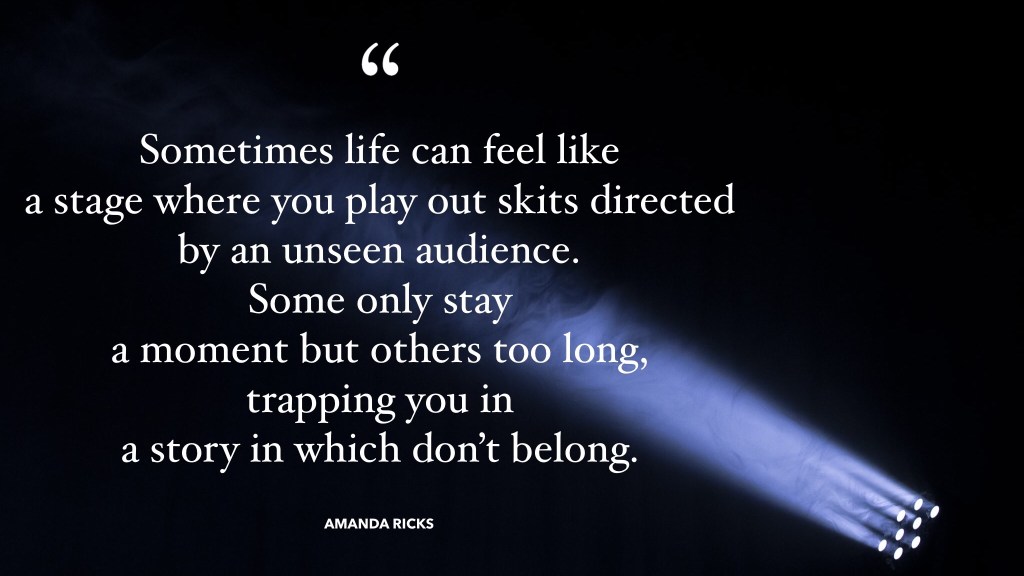 “Sometimes life can feel like a stage where you play out skits directed by an unseen audience. Some only stay a moment but others too long, trapping you in a story you don’t belong.” – Mandy Ricks