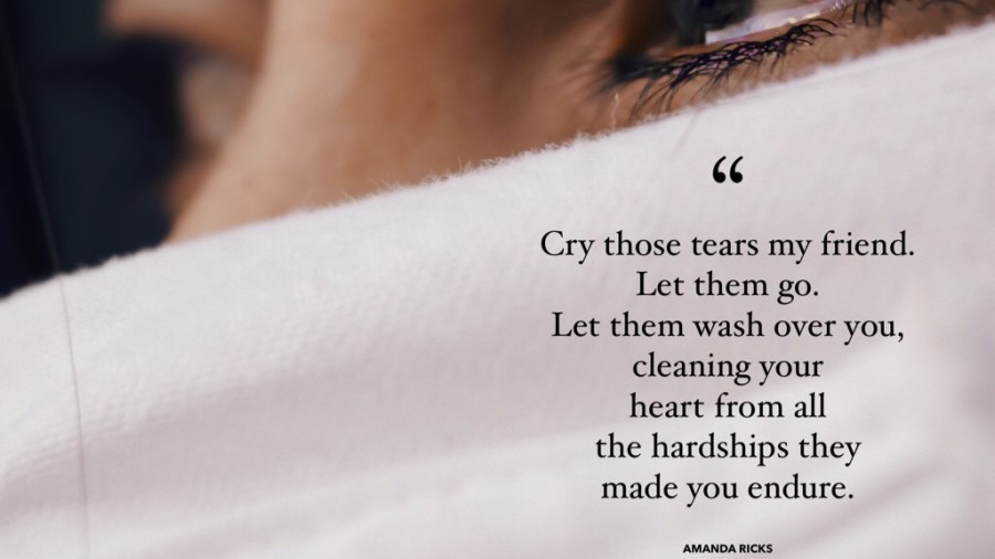 “Cry those tears my friend. Let them go. Let them wash over you, cleaning your heart from all the hardships they made you endure.” – Amanda Ricks