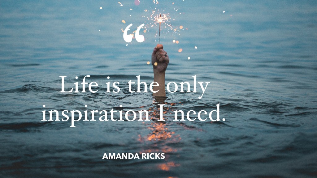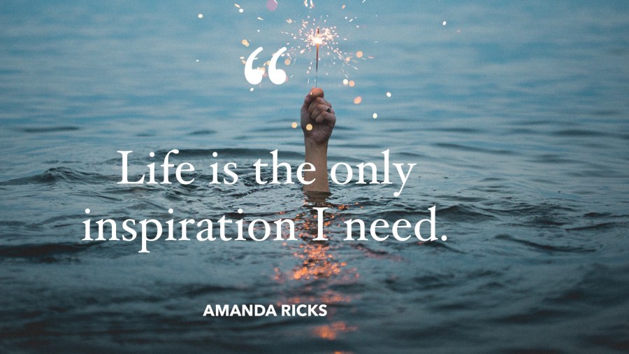 Inspiration On September 1, 2021 By AmandaIn Quotes “Life is the only inspiration I need.” – Amanda Ricks Share this: Click to share on X (Opens in new window) X Click to share on Facebook (Opens in new window) Facebook More Click to print (Opens in new window) Print Click to share on LinkedIn (Opens in new window) LinkedIn Click to share on Tumblr (Opens in new window) Tumblr Click to share on Pinterest (Opens in new window) Pinterest Click to share on Pocket (Opens in new window) Pocket Like Loading... Related