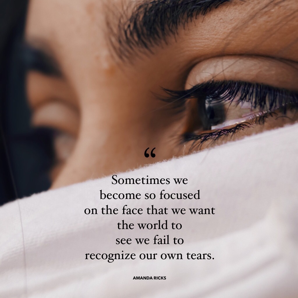 Our tears On September 19, 2021 By AmandaIn Quotes Sometimes we become so focused on the face that we want the world to see we fail to recognize our own tears. – Mandy Ricks Share this: Click to share on X (Opens in new window) X Click to share on Facebook (Opens in new window) Facebook More Click to print (Opens in new window) Print Click to share on LinkedIn (Opens in new window) LinkedIn Click to share on Tumblr (Opens in new window) Tumblr Click to share on Pinterest (Opens in new window) Pinterest Click to share on Pocket (Opens in new window) Pocket Like Loading... Related