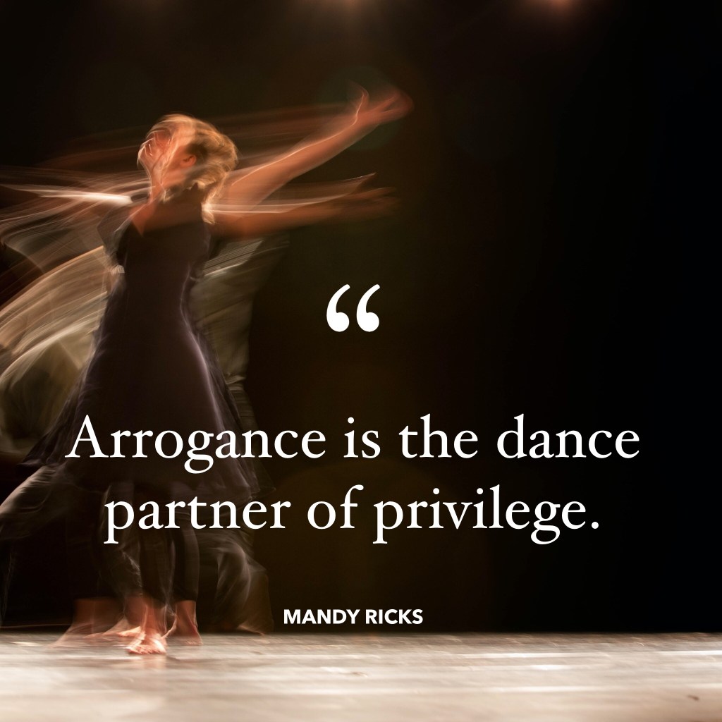Privilege On November 4, 2021 By AmandaIn Quotes Arrogance is the dance partner of privilege. – Mandy Ricks Share this: Click to share on X (Opens in new window) X Click to share on Facebook (Opens in new window) Facebook More Click to print (Opens in new window) Print Click to share on LinkedIn (Opens in new window) LinkedIn Click to share on Tumblr (Opens in new window) Tumblr Click to share on Pinterest (Opens in new window) Pinterest Click to share on Pocket (Opens in new window) Pocket Like Loading... Related