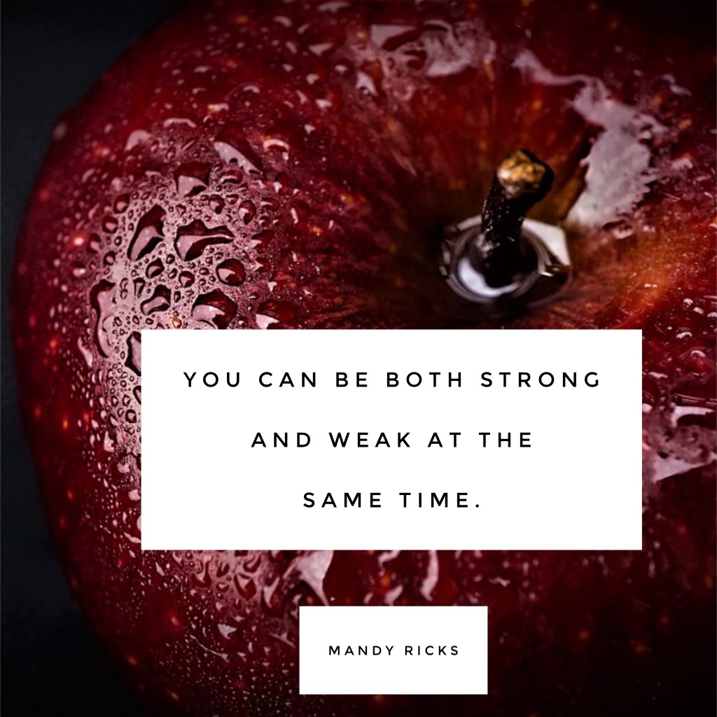 Strong and weak On November 1, 2022 By AmandaIn Quotes You can be both strong and weak at the same time. -Mandy Ricks Share this: Click to share on X (Opens in new window) X Click to share on Facebook (Opens in new window) Facebook More Click to print (Opens in new window) Print Click to share on LinkedIn (Opens in new window) LinkedIn Click to share on Tumblr (Opens in new window) Tumblr Click to share on Pinterest (Opens in new window) Pinterest Click to share on Pocket (Opens in new window) Pocket Like Loading... Related