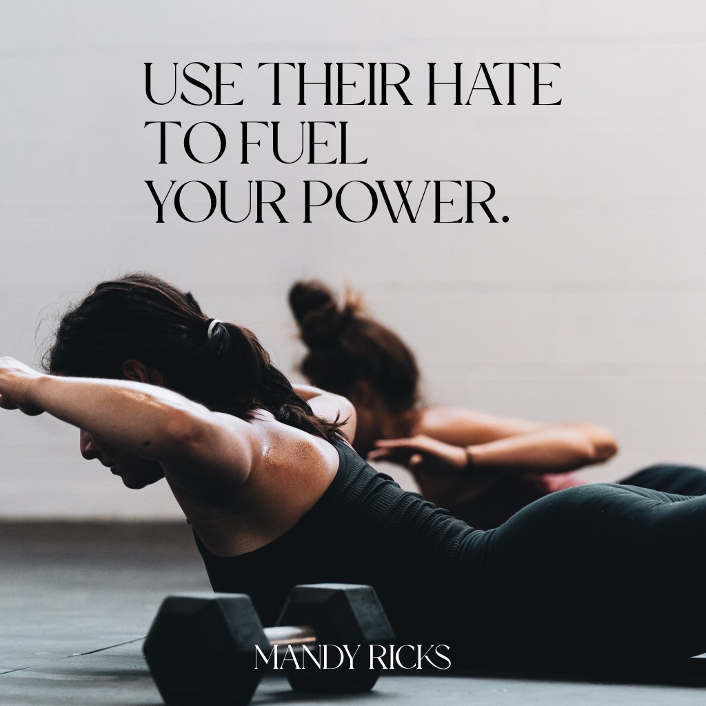 Hate and power On February 22, 2023 By AmandaIn Quotes Use their hate to fuel your power. -Mandy Ricks Share this: Click to share on X (Opens in new window) X Click to share on Facebook (Opens in new window) Facebook More Click to print (Opens in new window) Print Click to share on LinkedIn (Opens in new window) LinkedIn Click to share on Tumblr (Opens in new window) Tumblr Click to share on Pinterest (Opens in new window) Pinterest Click to share on Pocket (Opens in new window) Pocket Like Loading... Related