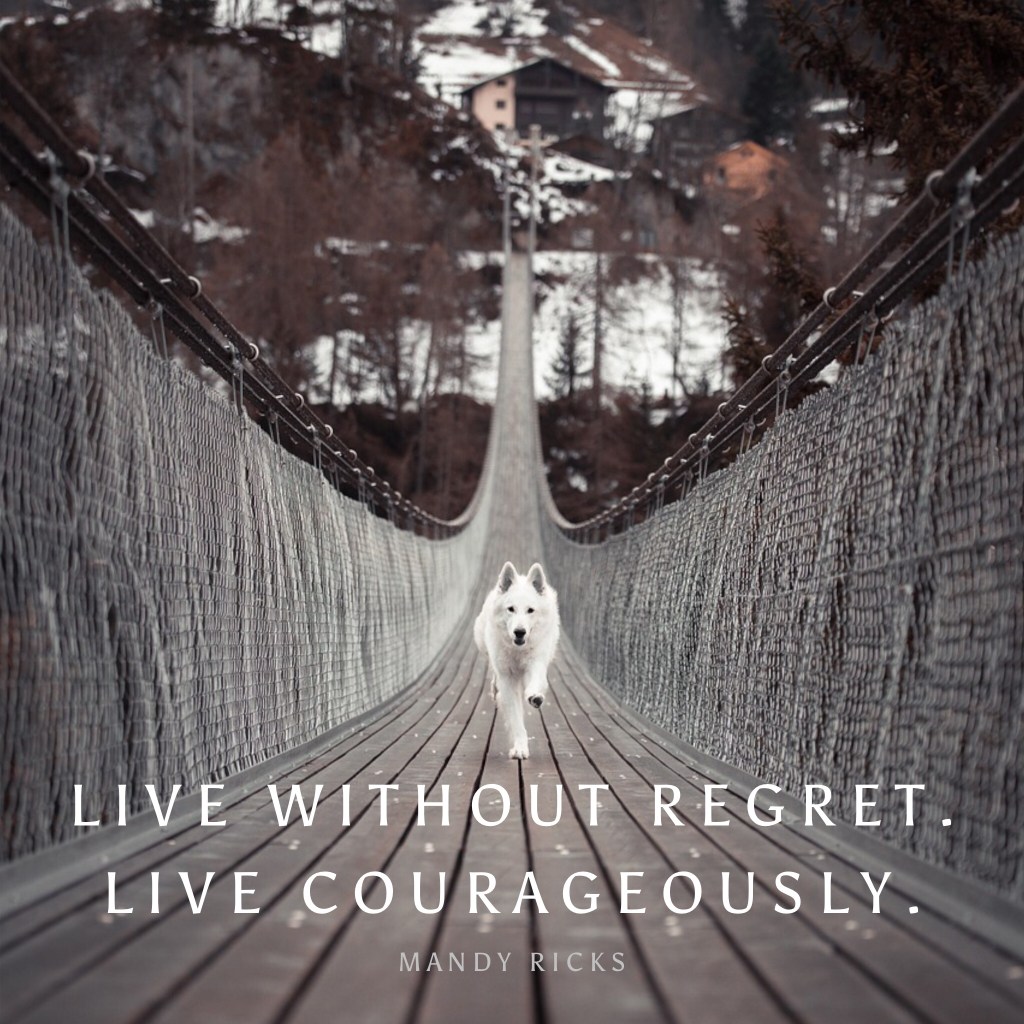Live courageously On August 14, 2023 By AmandaIn Quotes Live without regret. Live courageously. -Mandy Ricks Share this: Click to share on X (Opens in new window) X Click to share on Facebook (Opens in new window) Facebook More Click to print (Opens in new window) Print Click to share on LinkedIn (Opens in new window) LinkedIn Click to share on Tumblr (Opens in new window) Tumblr Click to share on Pinterest (Opens in new window) Pinterest Click to share on Pocket (Opens in new window) Pocket Like Loading... Related