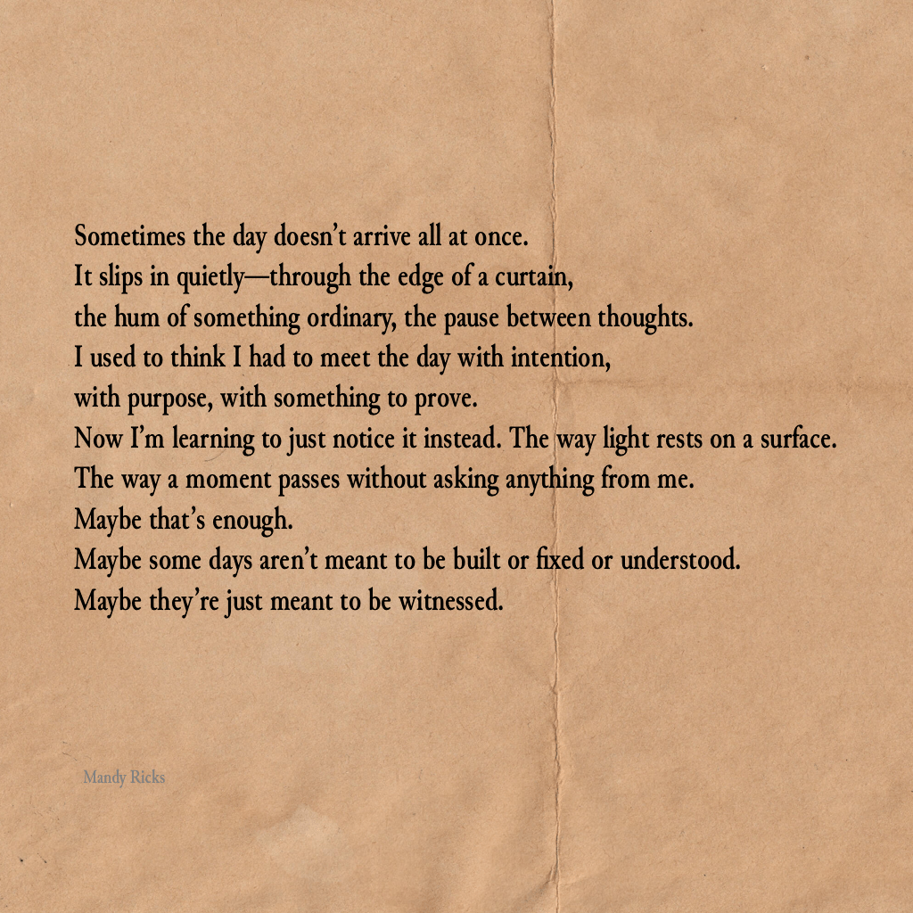 I used to think I had to meet the day with intention, with purpose, with something to prove.