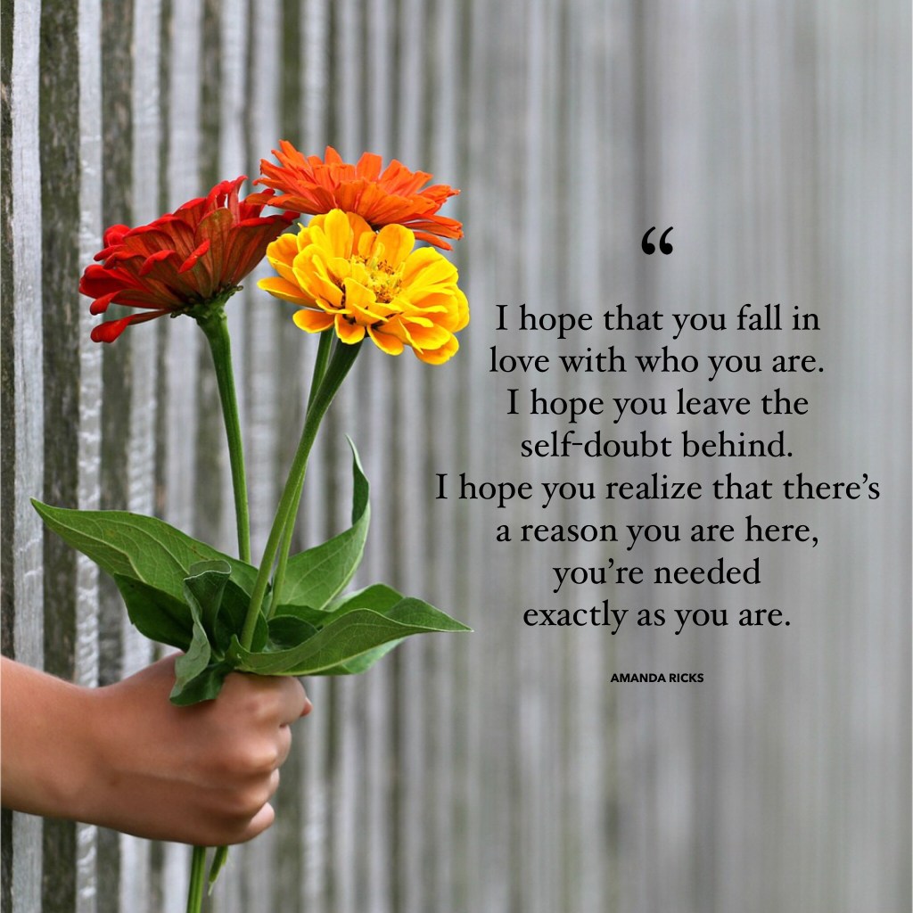 “I hope you fall in love with who you are. I hope you leave the self doubt behind. I hope you realize that there’s a reason you are here, you’re needed exactly as you are.” – Amanda Ricks