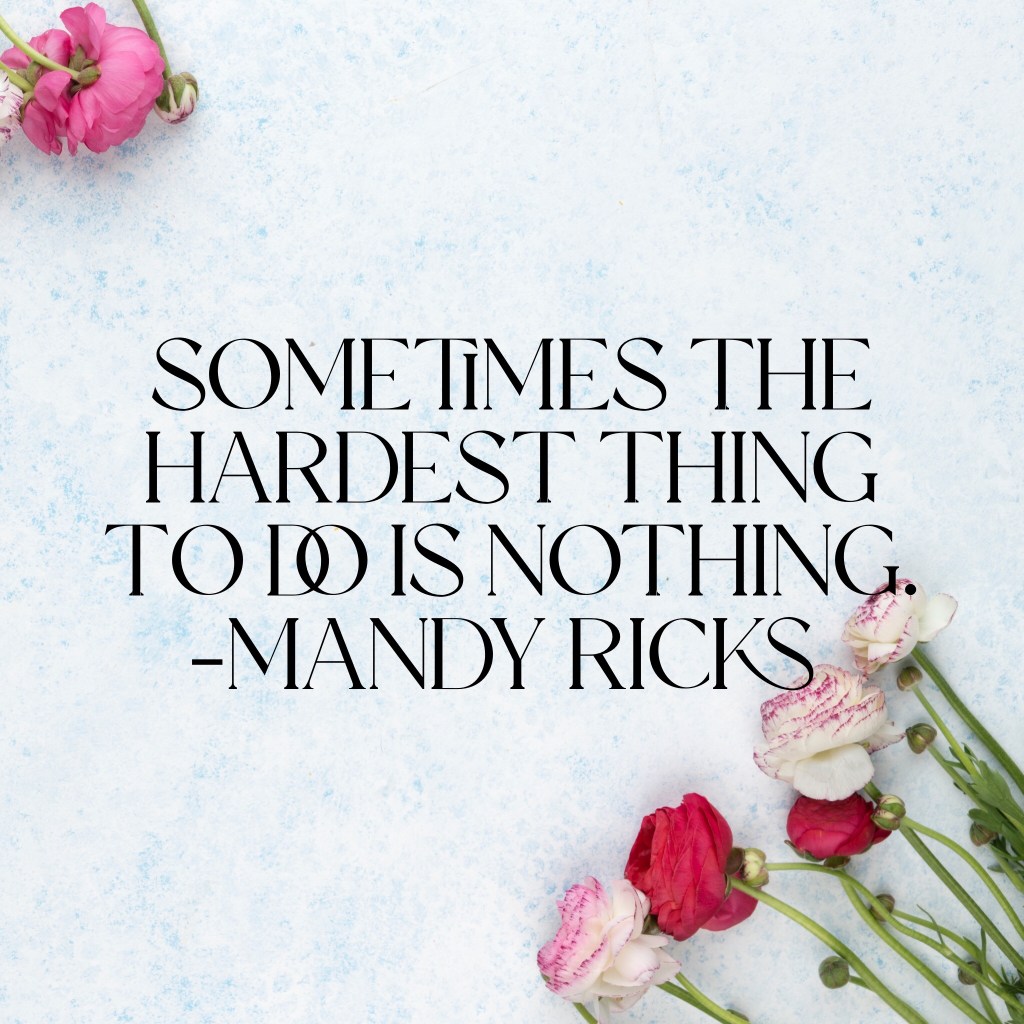 Sometimes the hardest thing to do is nothing. -Mandy Ricks