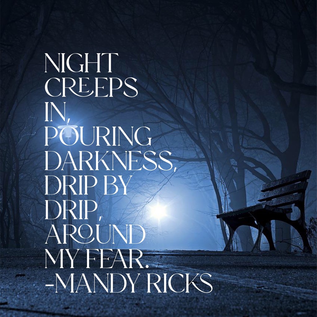 Night creeps in, pouring darkness, drip by drip, around my fear. -Mandy Ricks