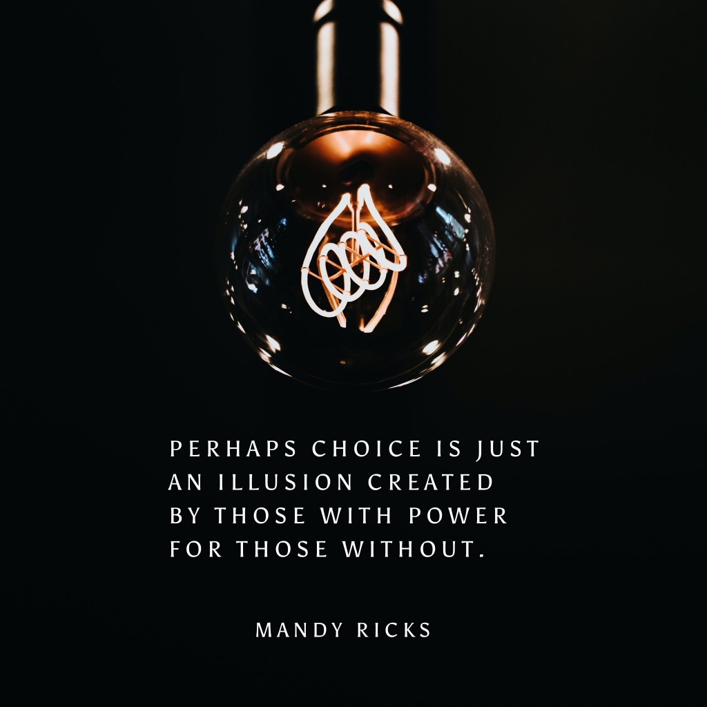 Perhaps choice is just an illusion created by those with power for those without. -Mandy Ricks
