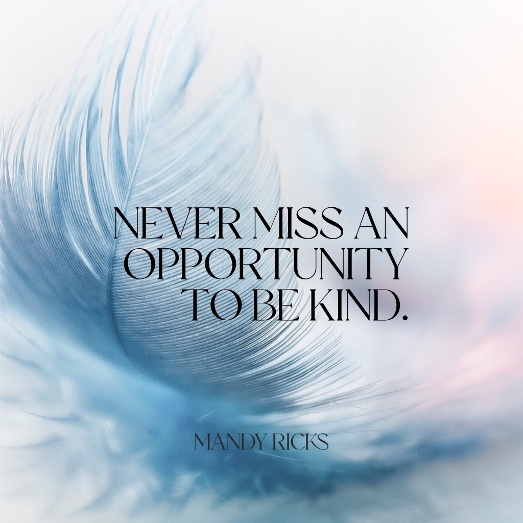Never miss an opportunity to be kind. -Mandy Ricks