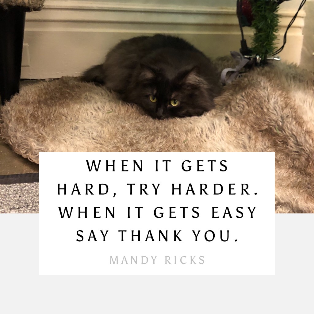 When it gets hard, try harder. When it gets easy say thank you. -Mandy Ricks with Willow
