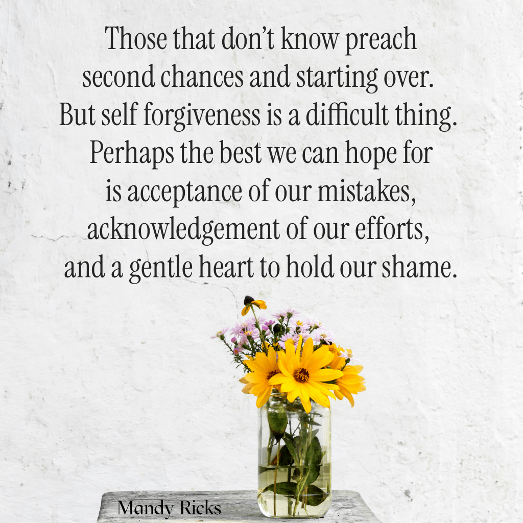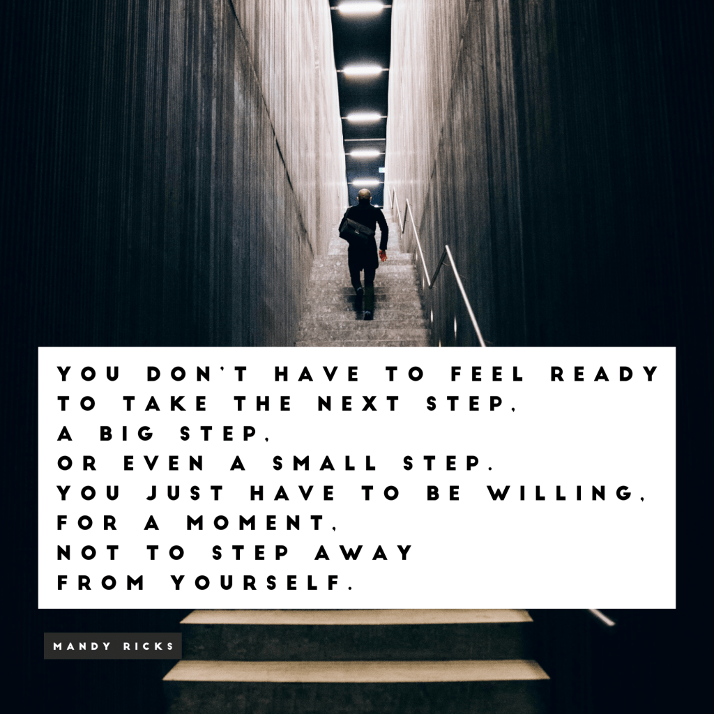 You don’t have to feel ready to take the next step, a big step, or even a small step. You just have to be willing, for a moment, not to step away from yourself. -Mandy Ricks